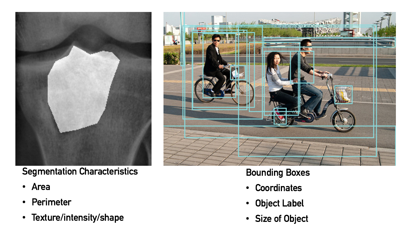 To apply weak supervision to these data types, we require an interpretable layer of abstraction, which encodes important characteristics of the raw data. We refer to these easily obtainable building blocks as domain-specific primitives (DSPs). These DPSs can take a variety of forms, such as bounding boxes and associated labels for natural images, and characteristics like area and perimeter for regions of interest in medical images. Moreover, pipelines to extract such characteristics from the raw pixels already exist, such as state-of-the art object detection pipelines and feature extraction algorithms from the pre-deep learning era.