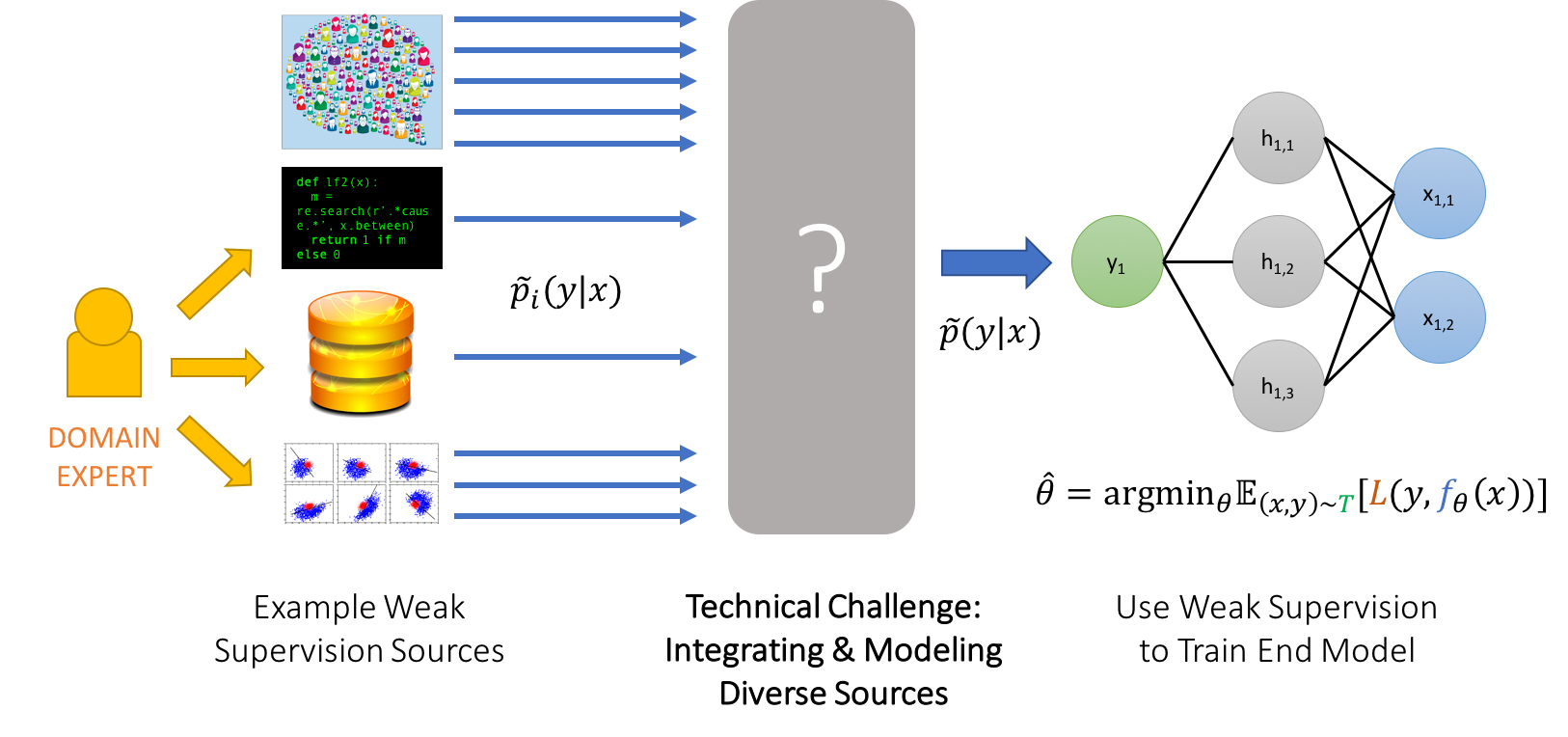 - We’ll discuss the key technical challenge of integrating and modeling diverse sets of weak supervision signals.